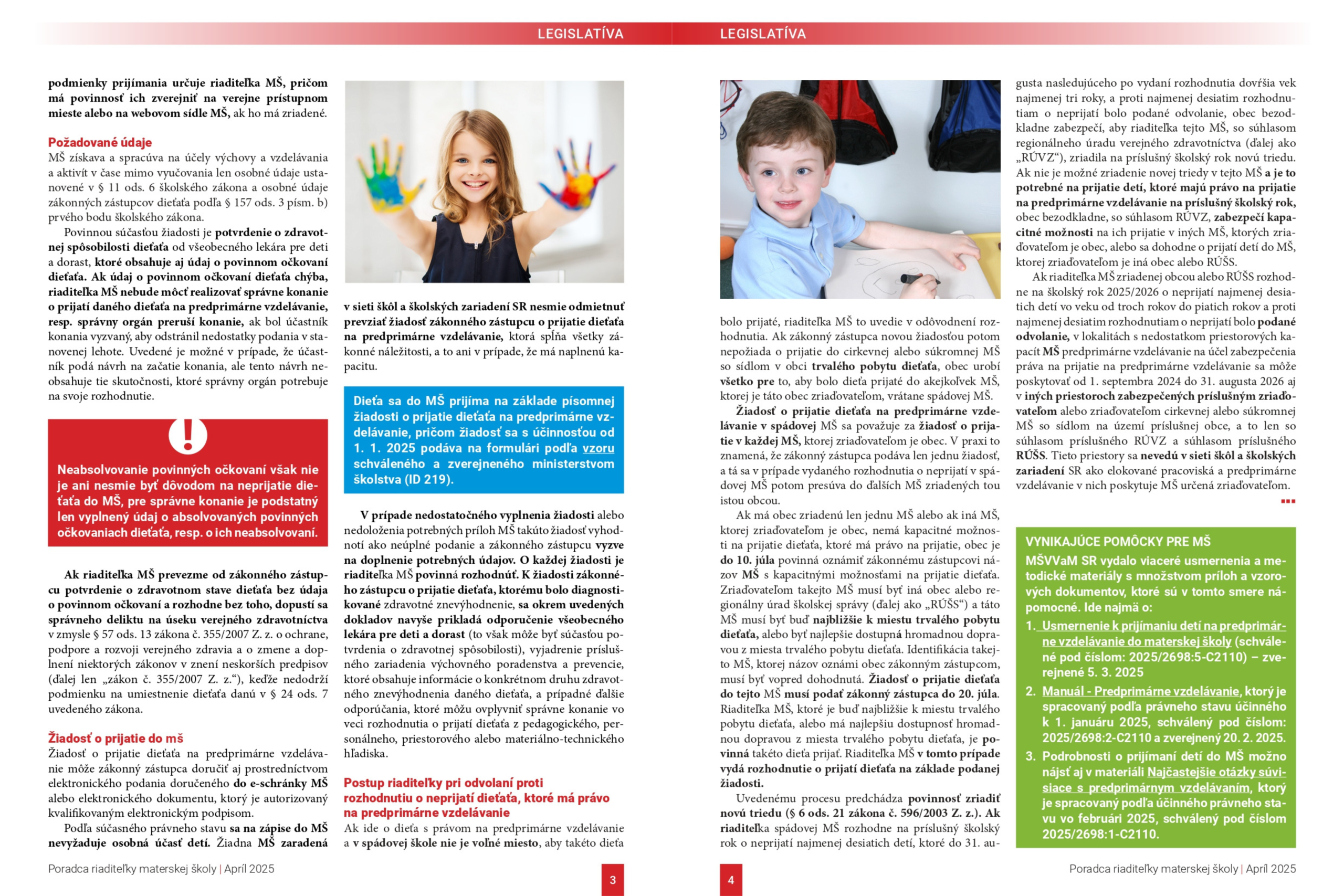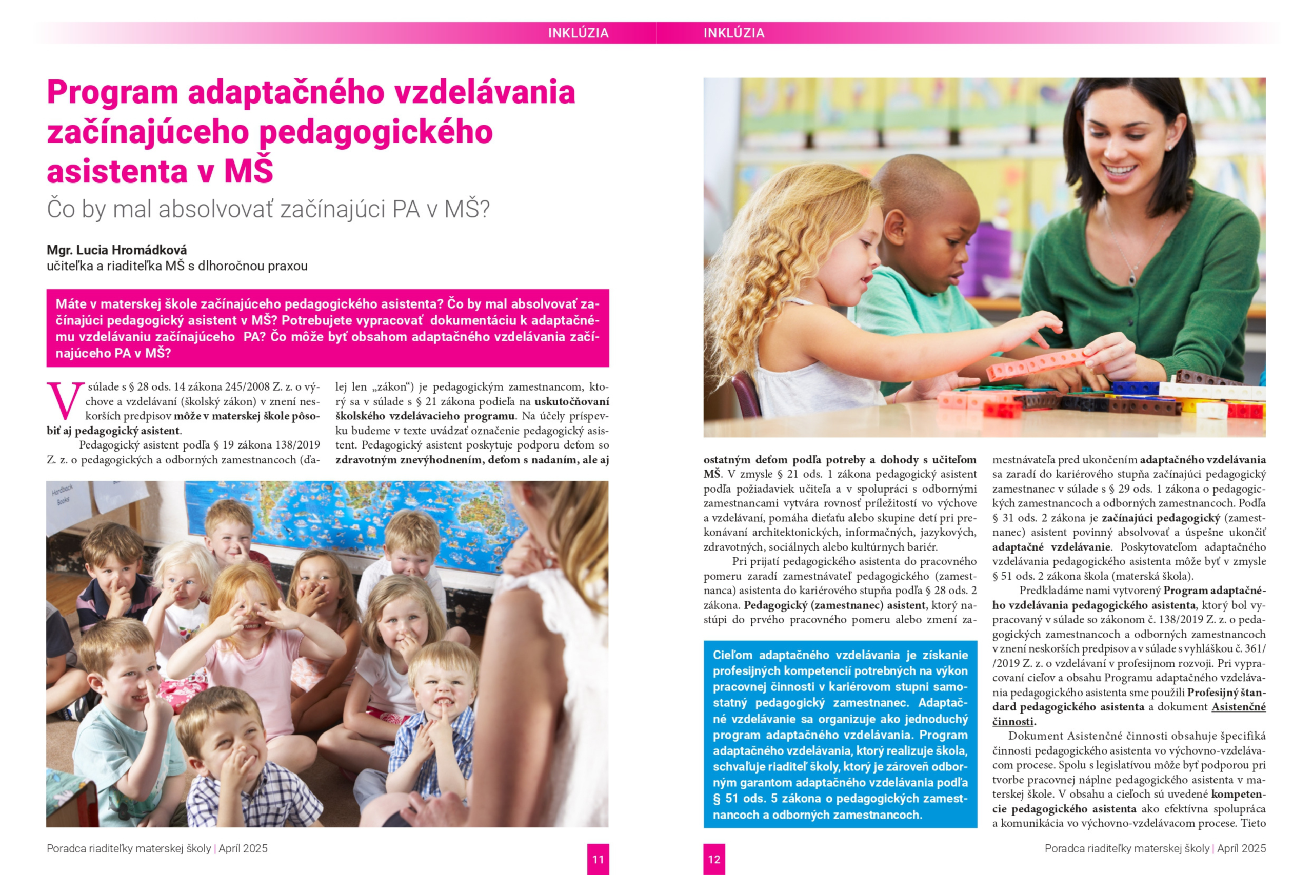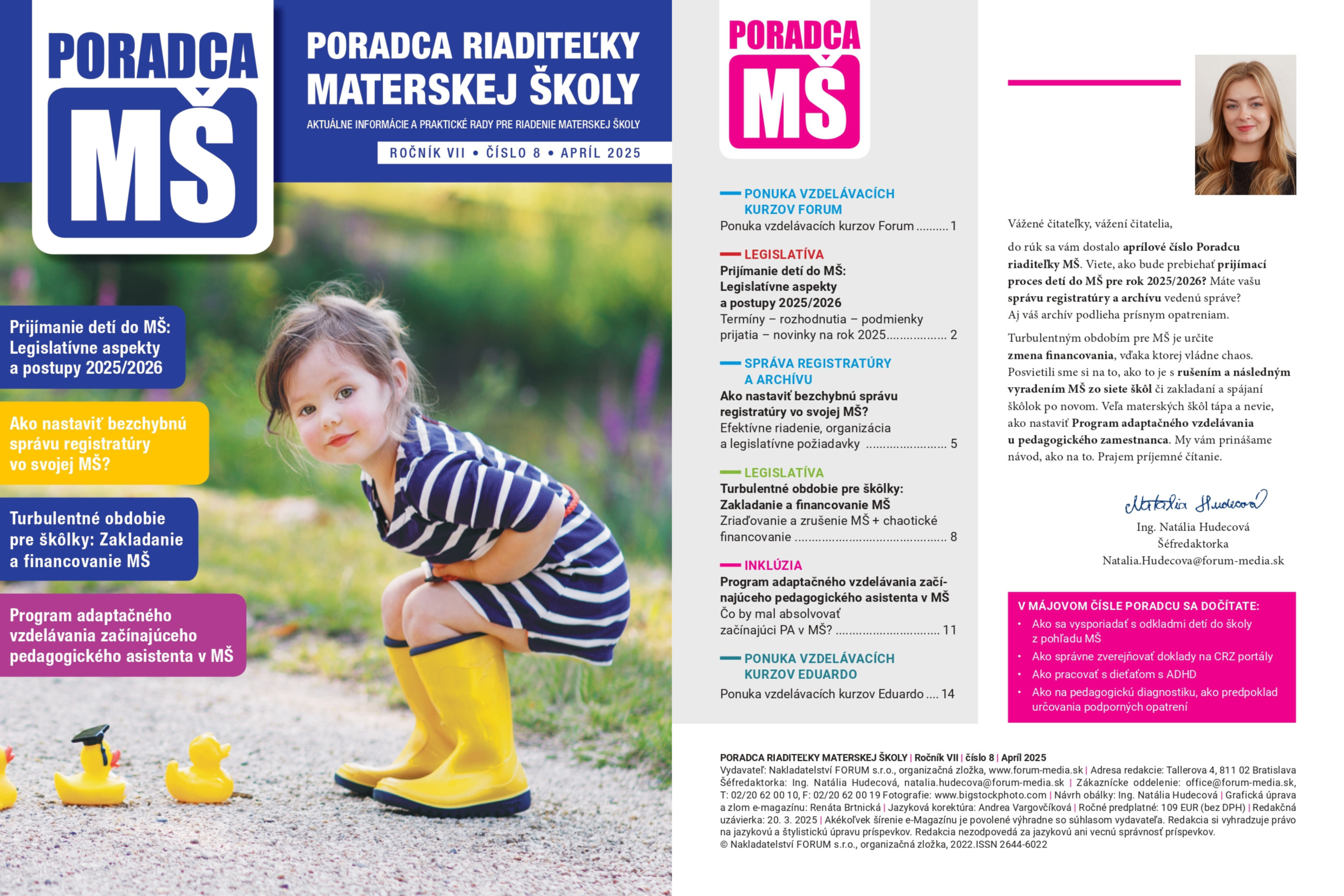 Chcete mať každý mesiac kompletný prehľad o všetkých novinkách a povinnostiach súvisiacich s výkonom povolania riaditeľky MŠ? Kedykoľvek sa dostať k tým najlepším riešeniam konkrétnych situácií z praxe? Nájsť odpovede na všetky vaše otázky z oblasti práva, pedagogiky i psychológie a v neposlednom rade dostávať zaujímavé inšpirácie pre prácu s deťmi v MŠ? Neváhajte! Náš časopis, ktorý sa venuje vysoko aktuálnej problematike vedenia a riadenia materskej školy v praxi, je určený práve vám!